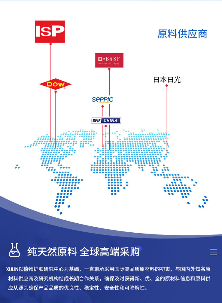 采用進(jìn)口原料,國際科研,締造國際品質(zhì)!緊隨國際市場的主流信息,不斷運(yùn)用新的科學(xué)技術(shù)改造自己的產(chǎn)品,為客戶提供有市場價(jià)值的技術(shù)與新產(chǎn)品配方。